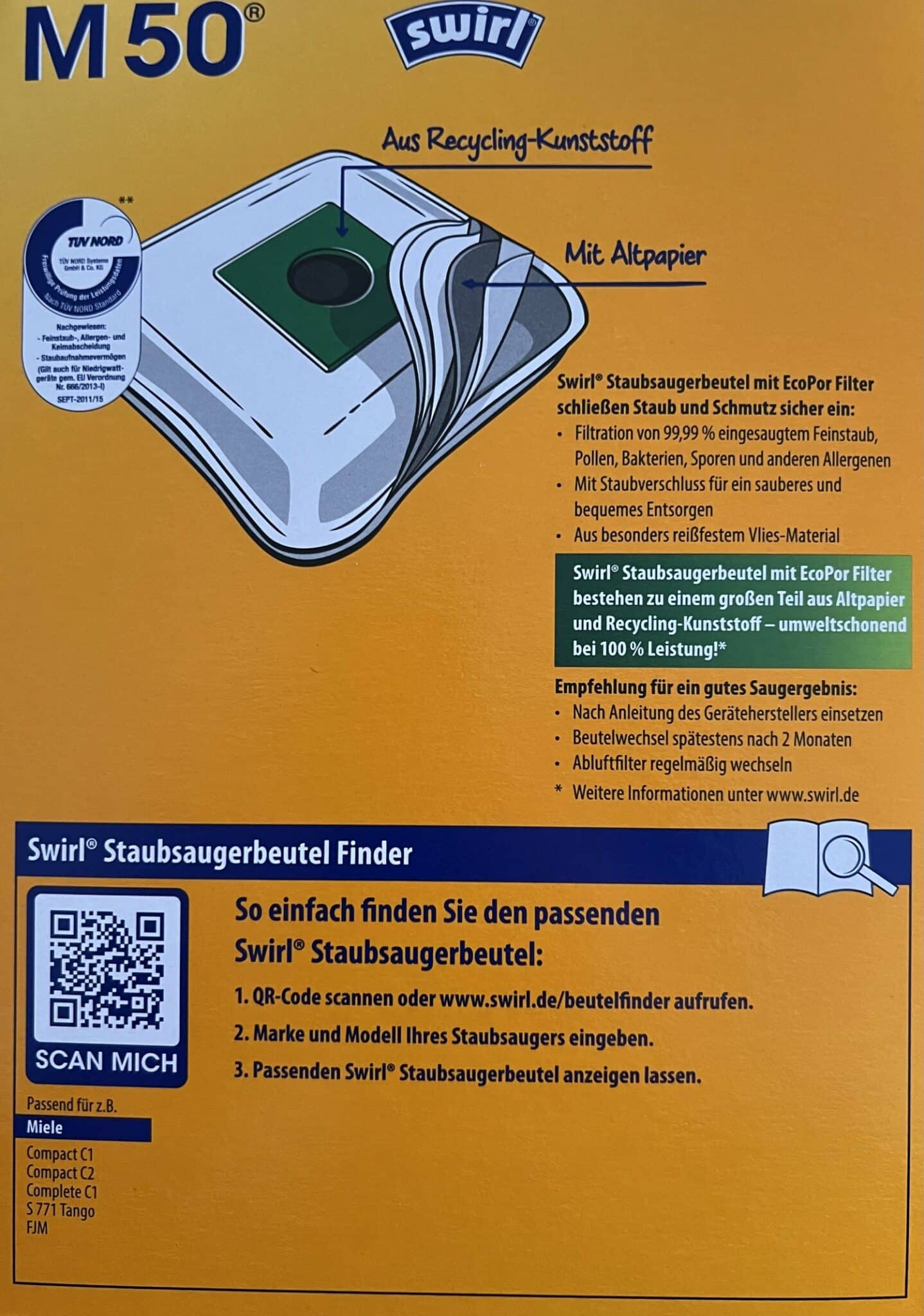 4 x 4 = 16 Swirl Staubfilterbeutel M50 NEU & OVP