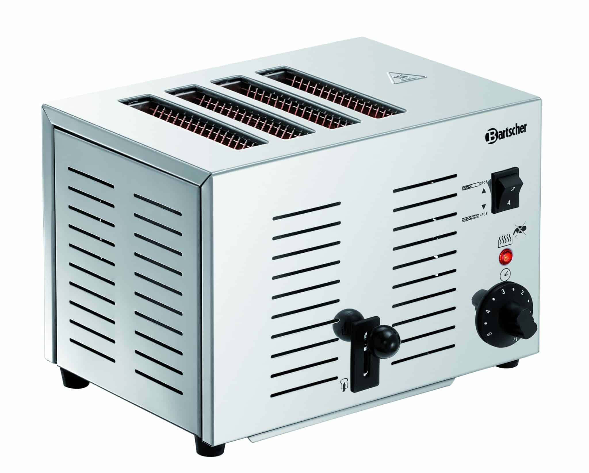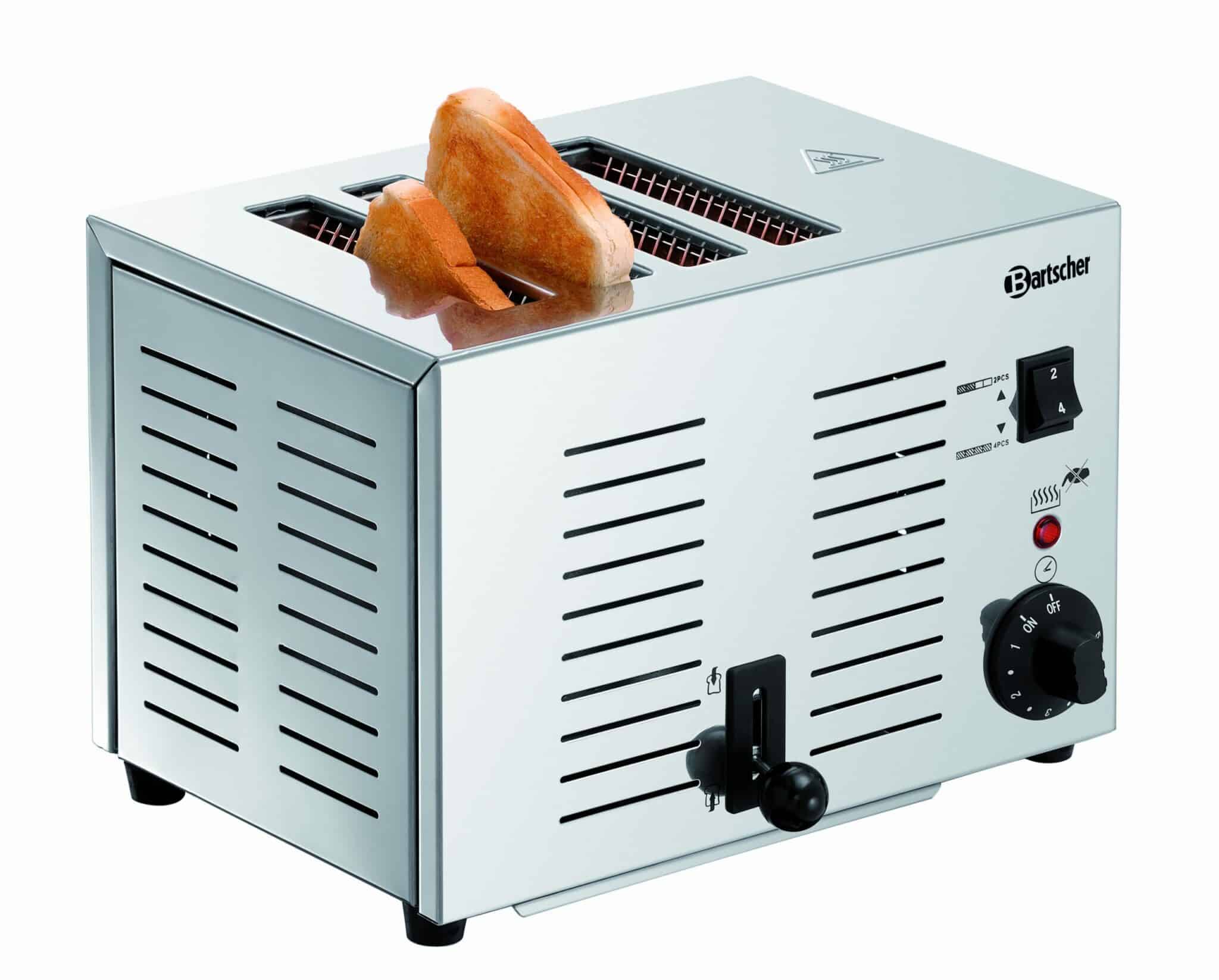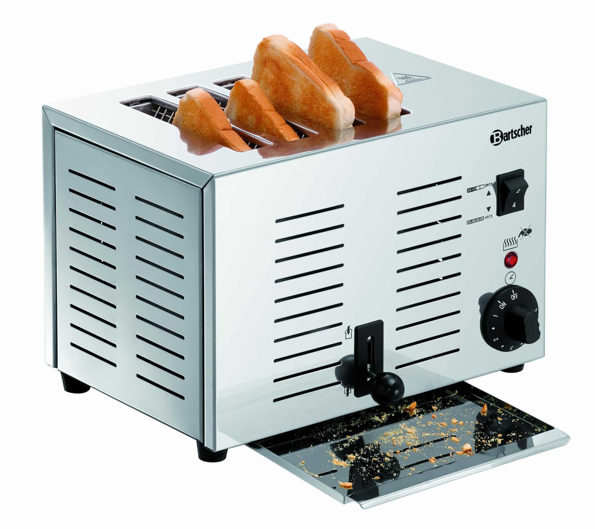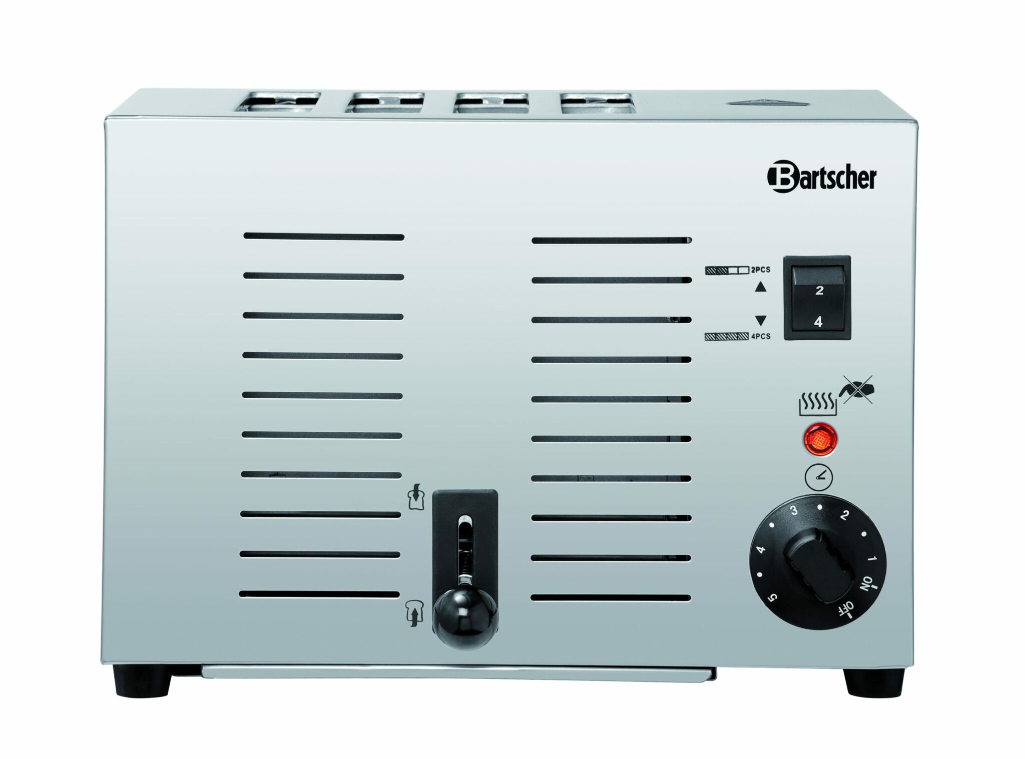 - Bedienung: 1 Bedienhebel für 4 Schlitze (manueller Auswurf) Wahlschalter für die Inbetriebnahme der Toastschlitze, 2er-Gruppen